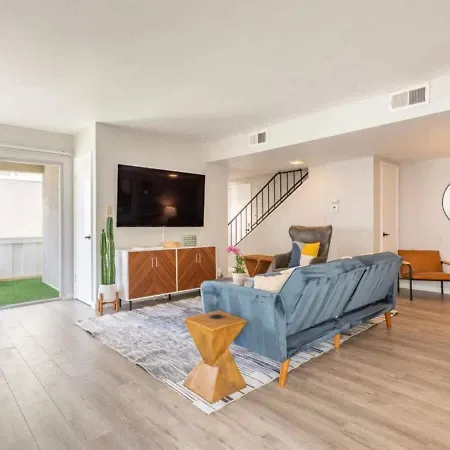 De Hermosa Avenue is op 10 minuten rijafstand van Downtown Manhattan Beach 3 Bed Townhouse Parking, Public Art "Light Gate" is er ook vlakbij. Gasten kunnen genieten van een kust uitzicht op de zee vanaf een zonneterras dat bij het appartement van 121 m² hoort.